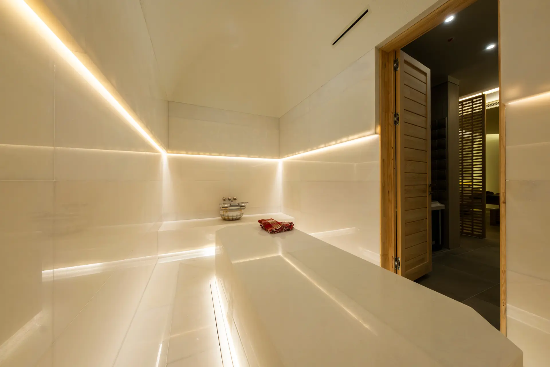 Yüzyıllardır süregelen bir ritüelin, modern dokunuşlarla yeniden hayat bulduğu Türk Hamamı’mızda, bedeninizin derinlemesine arındığını hissedeceksiniz. Buharın ve sıcaklığın etkisiyle gevşeyen kaslar, özel kese ve köpük uygulamalarıyla tazeleniyor. Altın Orfoz’un eşsiz hizmet anlayışıyla birleşen bu geleneksel deneyim, sadece bir temizlik değil, aynı zamanda zihinsel bir ferahlama sunuyor.