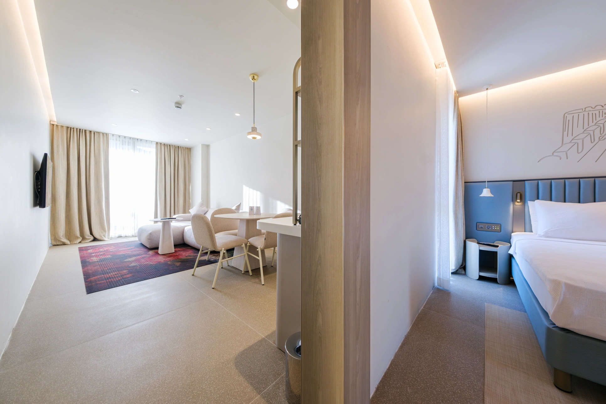 Suit içerisinde bir yatak odası ve ayrı bir salon bulunmaktadır.