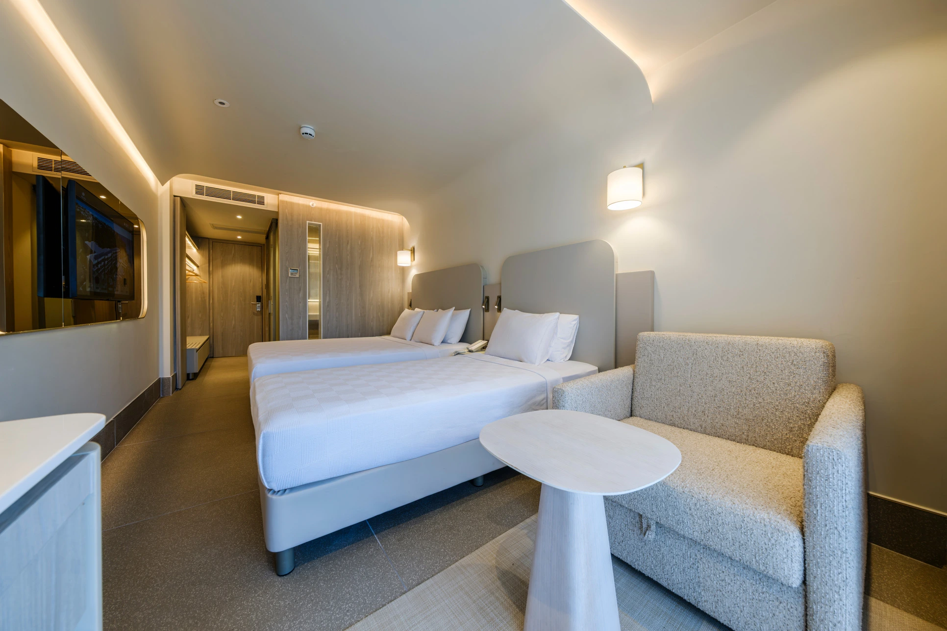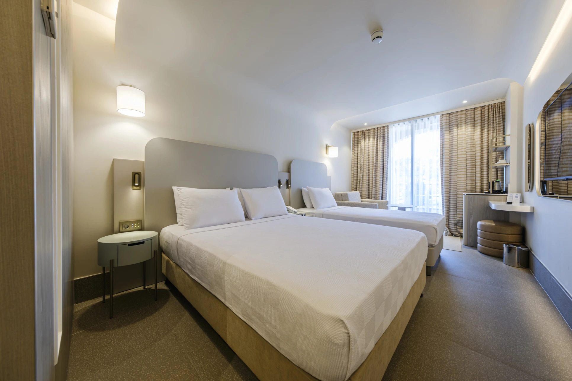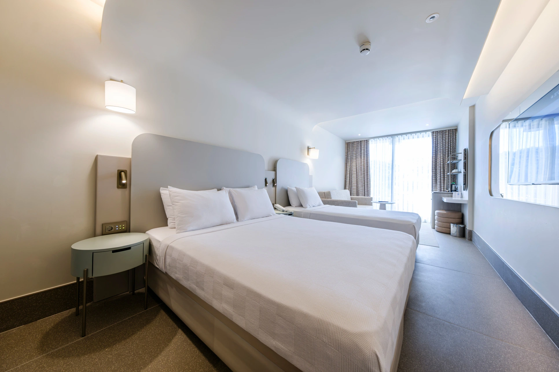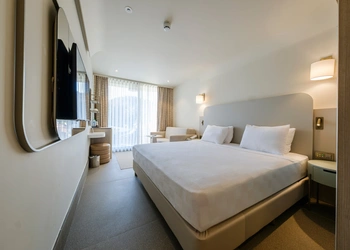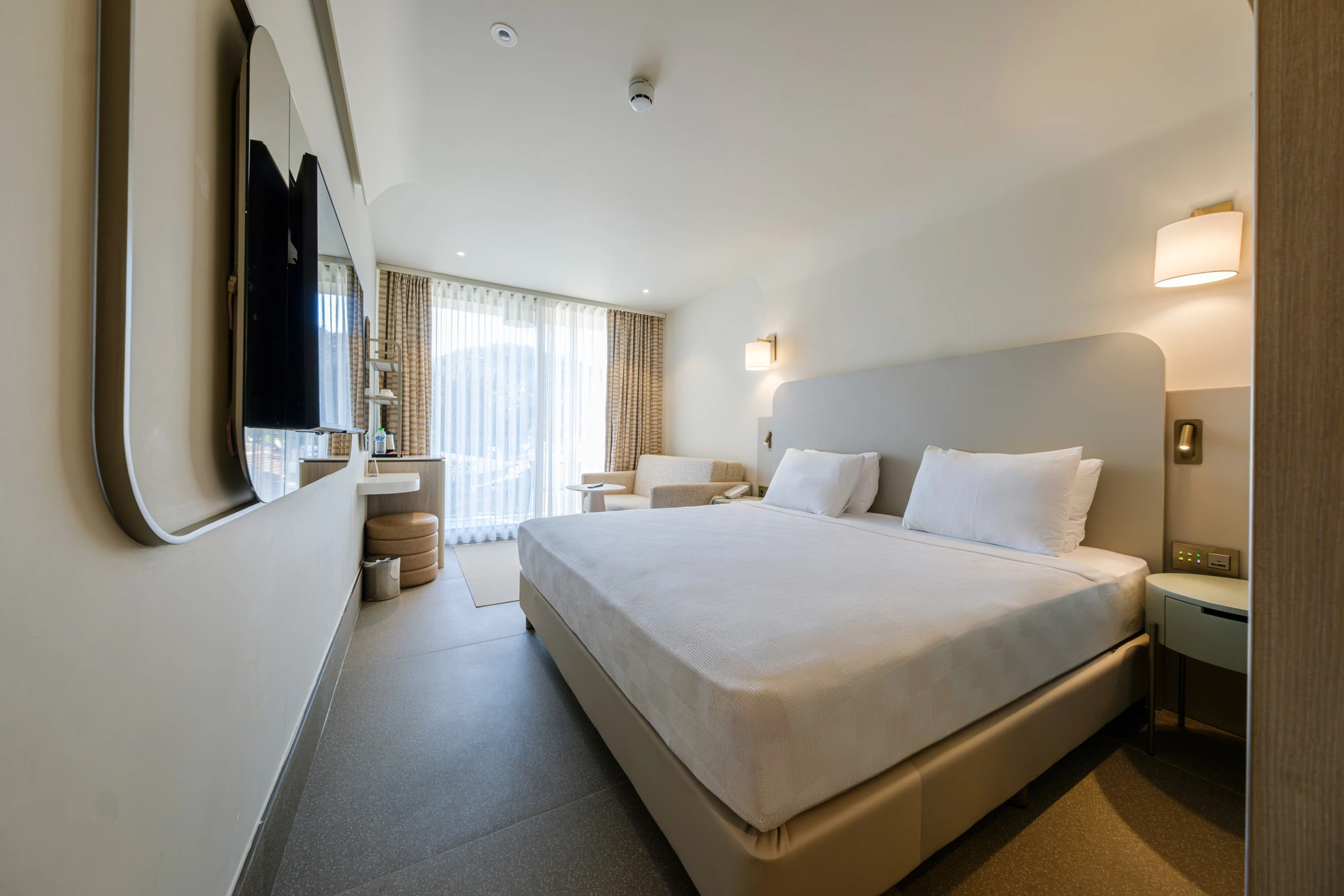 Geniş balkonları, yumuşak tonlarla hazırlanmış sakin dekorasyonu, fonksiyonel çözümleri ve yüksek konfor sunan üst düzey yatakları ile konaklamanız boyunca kendinizi evinizde hissedeceksiniz.
