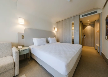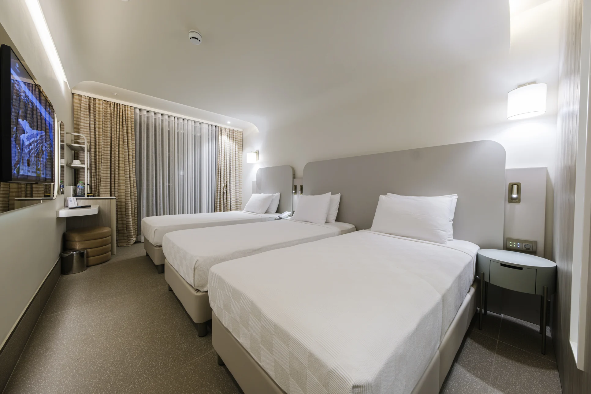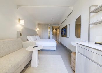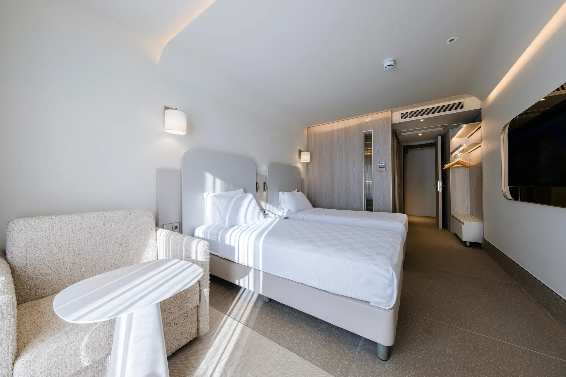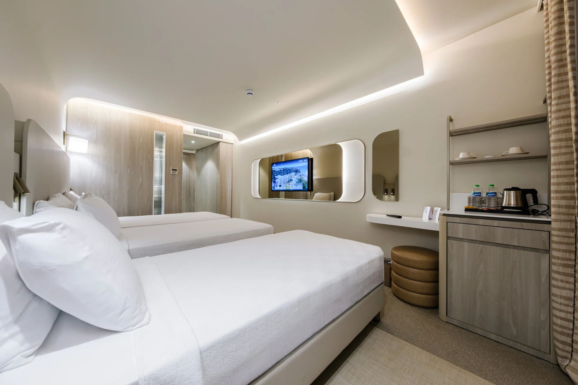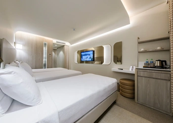 Geniş balkonları, yumuşak tonlarla hazırlanmış sakin dekorasyonu, fonksiyonel çözümleri ve yüksek konfor sunan üst düzey yatakları ile konaklamanız boyunca kendinizi evinizde hissedeceksiniz.