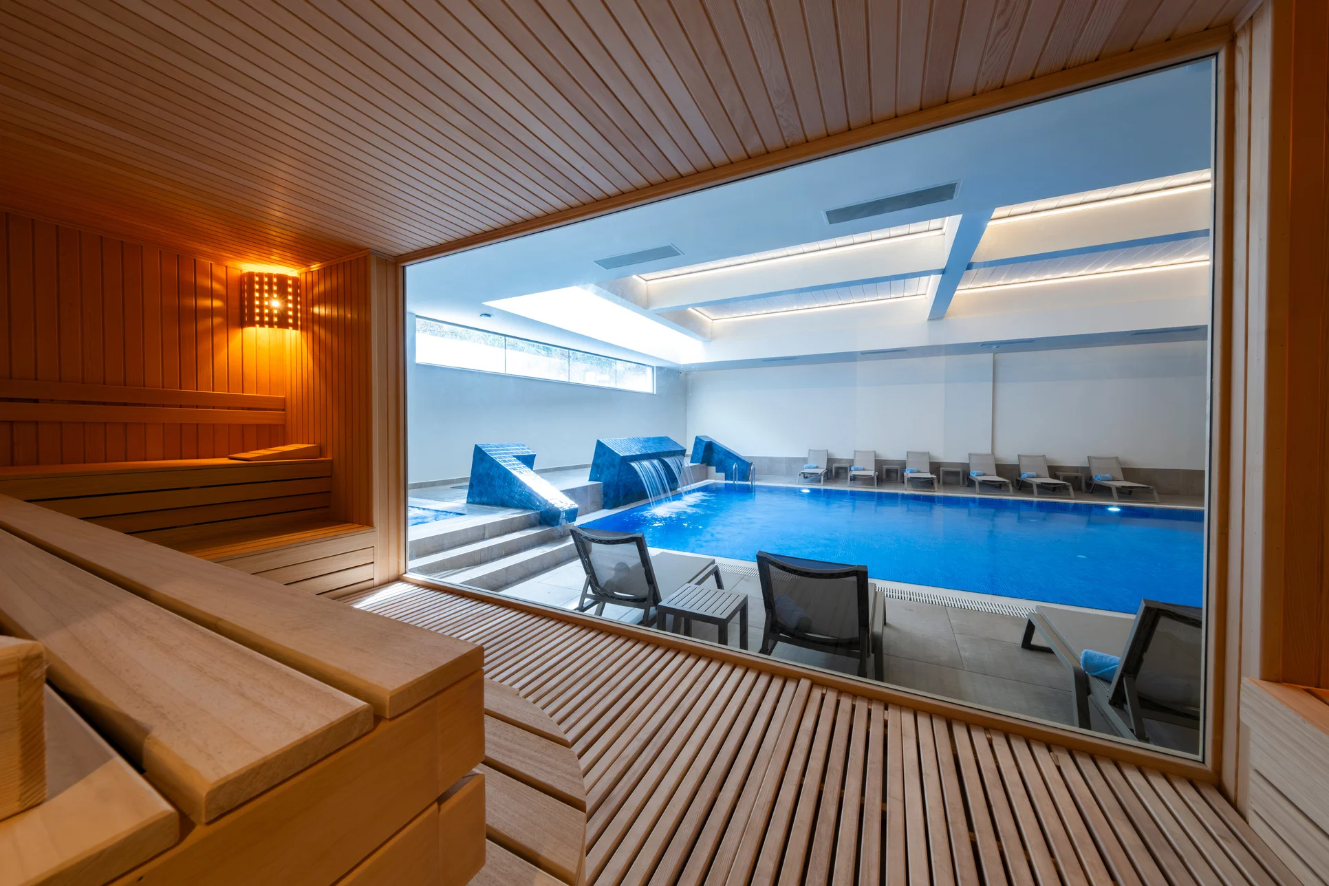 Her mevsim konforlu bir yüzme deneyimi sunan kapalı havuzumuz, zarif mimarisi ve ferah ortamıyla öne çıkıyor. İster güne enerjik bir başlangıç yapın, ister günün yorgunluğunu suyun içinde bırakın… Tüm yıl boyunca keyifle kullanabileceğiniz bu alan, hem dinlenmek hem de formda kalmak isteyen misafirlerimiz için ideal bir durak.