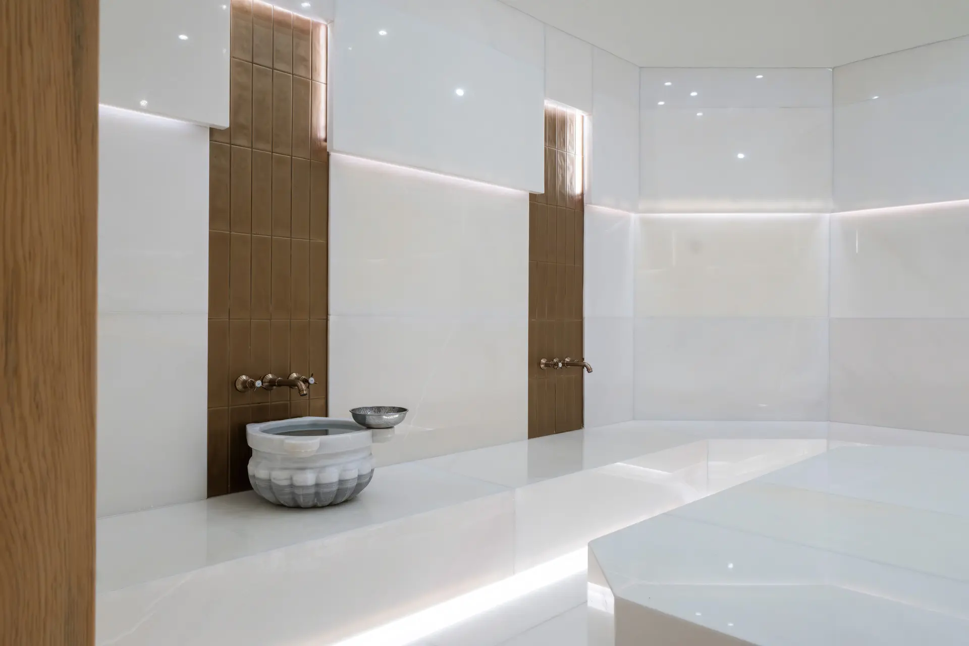 Yüzyıllardır süregelen bir ritüelin, modern dokunuşlarla yeniden hayat bulduğu Türk Hamamı’mızda, bedeninizin derinlemesine arındığını hissedeceksiniz. Buharın ve sıcaklığın etkisiyle gevşeyen kaslar, özel kese ve köpük uygulamalarıyla tazeleniyor. Altın Orfoz’un eşsiz hizmet anlayışıyla birleşen bu geleneksel deneyim, sadece bir temizlik değil, aynı zamanda zihinsel bir ferahlama sunuyor.